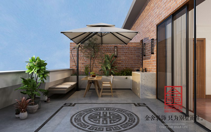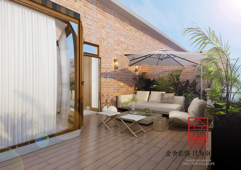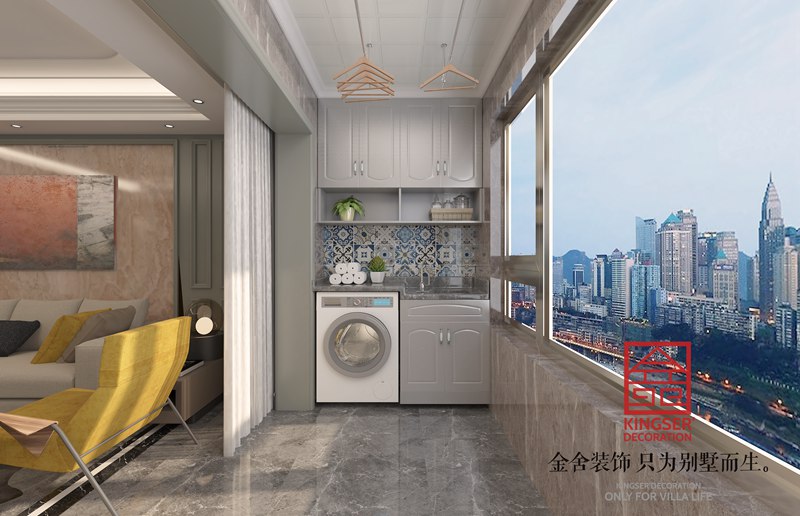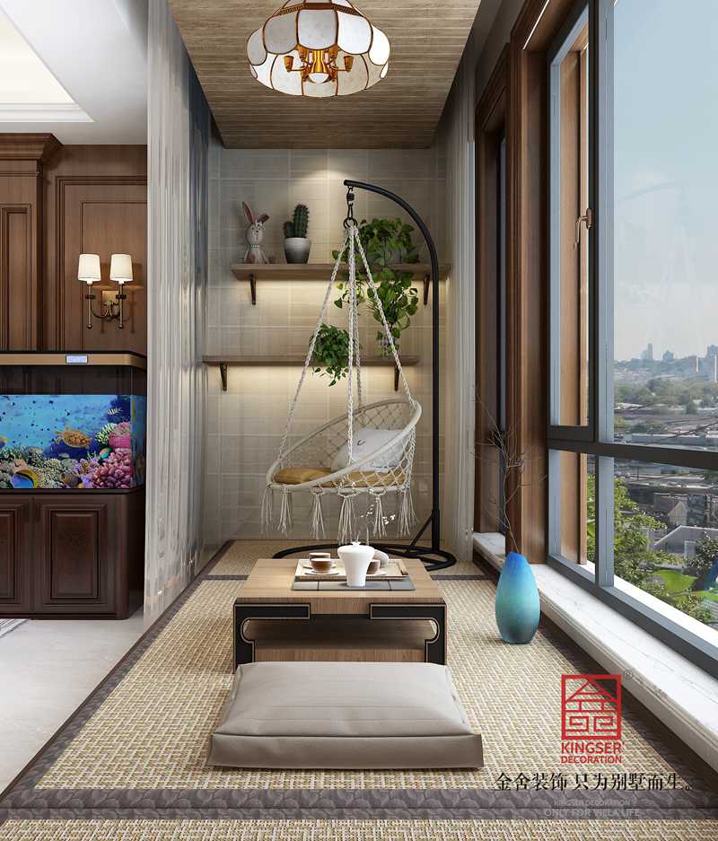 榮盛華府200㎡輕美式風格陽臺裝修設計