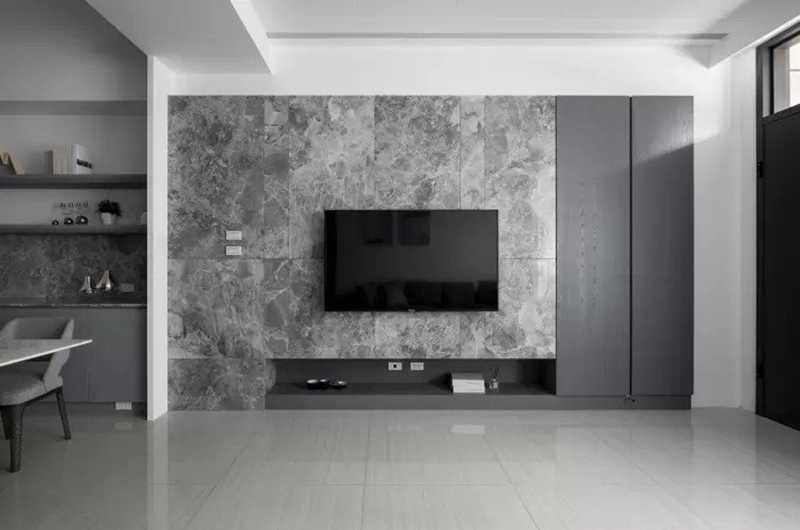灰白紋理的大理石電視背景墻簡約大氣,沒有過多的裝飾,使空間充滿簡潔高雅的品質感。