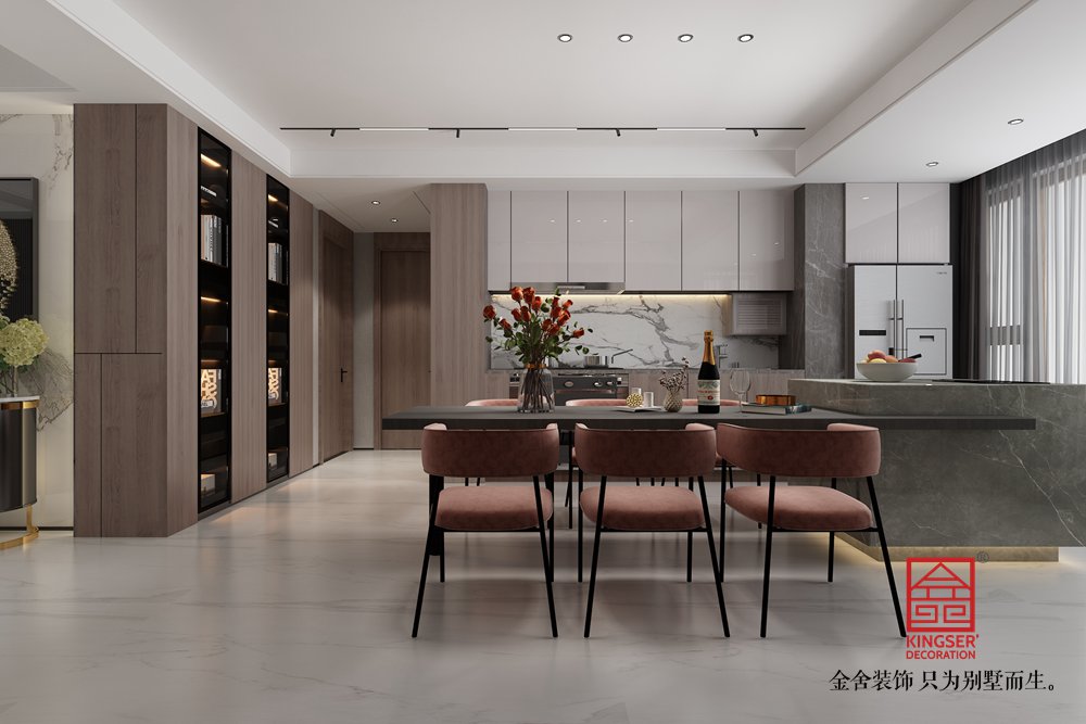 如果是小戶型的空間,想要實現廚房的寬敞,就可以考慮餐廚一體的設計,然后在餐廳廚房之間可以裝多一個小島臺,實現豐富多樣的餐廚體驗,讓小戶型的生活也更加有儀式感。