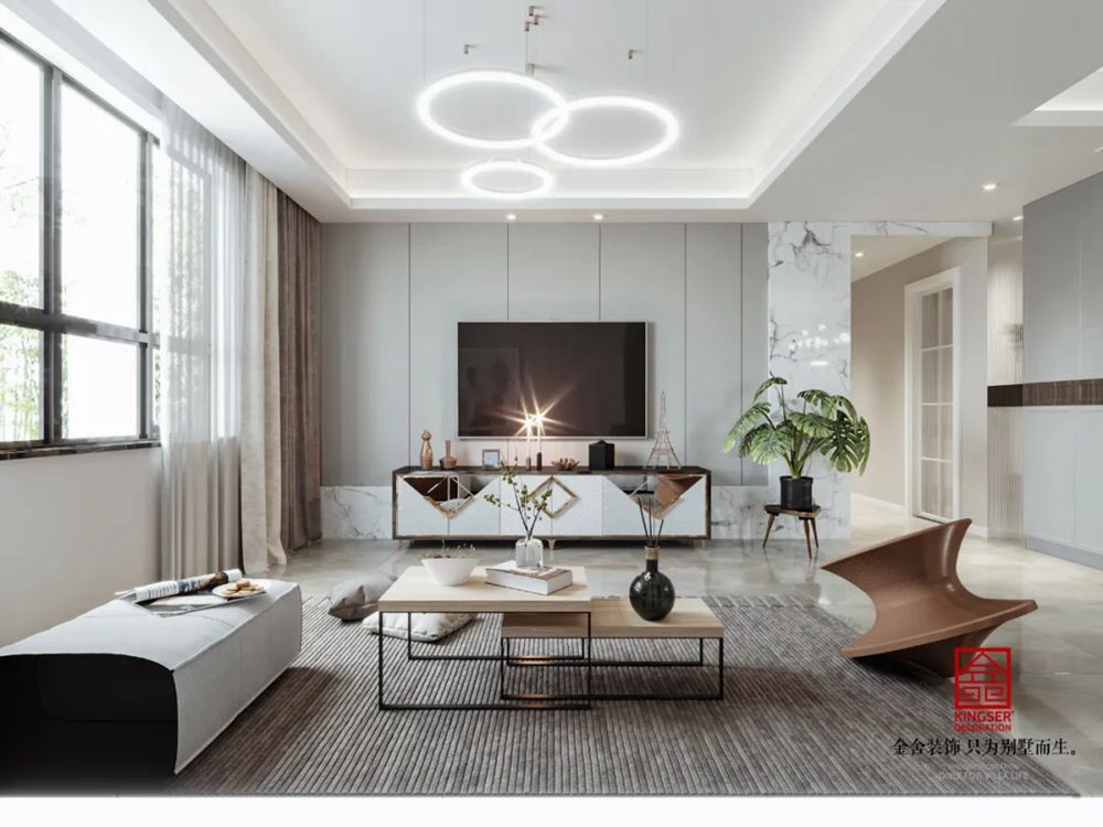 此案例為石家莊金舍裝飾-融創中心137平米輕奢風格裝修案例賞析。生活原本就該屬于寧靜,當我們置身于繁華都市太久,自然會想要抽身剝離,去追尋內心的閑適與平和。一個優雅舒適的家,除了擁有優質的地理位置與人性化的社區管理以外,還需要精致的軟裝設計來裝點生活。輕奢是一種高格調的生活態度,正是年輕人所需要的生活品質,輕奢生活,精致到老,對于現代人,尤其是當下的年輕人們而言,切實給了人們心靈的觸動。