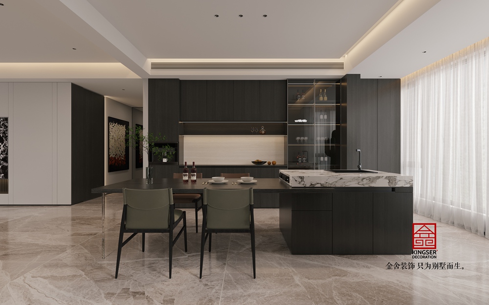 開放式書房的色彩搭配應以營造寧靜、舒適的氛圍為原則。整體色調可選擇淡雅、柔和的顏色,如米白色、淺灰色、淡藍色等,這些顏色能給人帶來放松的感覺,有助于集中注意力。在局部可通過色彩的對比來增加空間的活力,例如,選擇一把色彩鮮艷的椅子作為書房的亮點,或者在書架上擺放一些色彩豐富的裝飾品。同時,要注意書房色彩與整個家居環境的協調性,避免出現過于突兀的顏色組合。