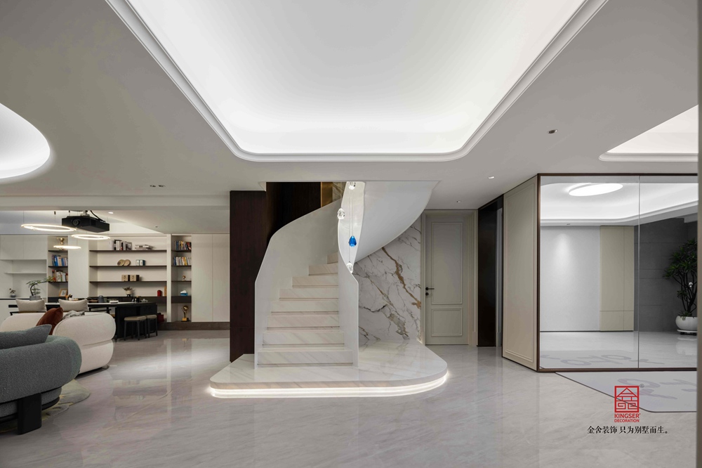 古典法式風(fēng)格華麗又奢雅,常出現(xiàn)在別墅等大宅中。石家莊裝修公司在處理這類風(fēng)格時(shí),多會(huì)采用復(fù)雜精美的吊頂,像石膏浮雕吊頂,中心的浮雕圖案搭配幾何框架和石膏角線,盡顯宮廷奢華;拱形穹頂用在門廳或餐廳,搭配水晶吊燈,瞬間成為視覺焦點(diǎn);大平層則適合疊級(jí)吊頂,通過錯(cuò)落層次提升空間質(zhì)感。?