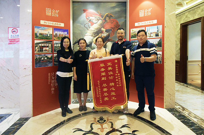維多利亞三期的米女士的錦旗!并述說了在裝修過程中工程人員認真負責盡心盡職的態度,特為此送上錦旗表示感謝!金舍裝飾曹小雨設計師代表公司接受錦旗并表示,用心服務客戶是公司的宗旨,對于施工質量的保證及售后的服務是一個裝飾公司應具有最基礎的信譽保障。