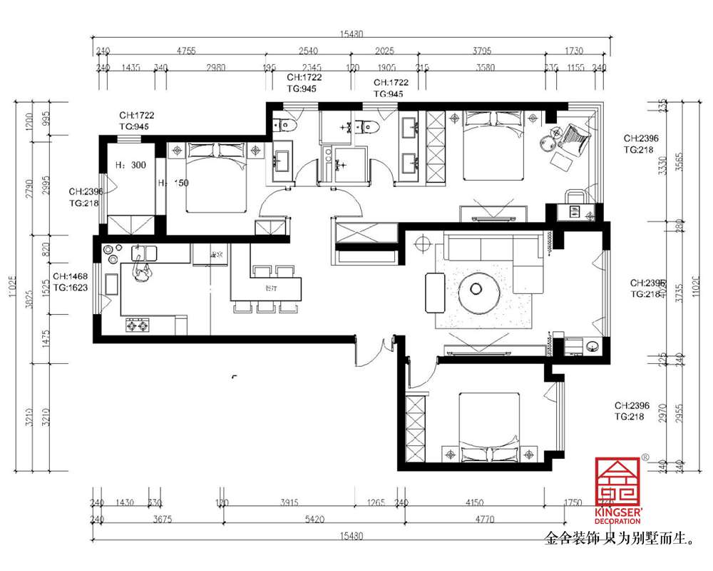 風格:輕奢風格 戶型:三居 面積:155㎡