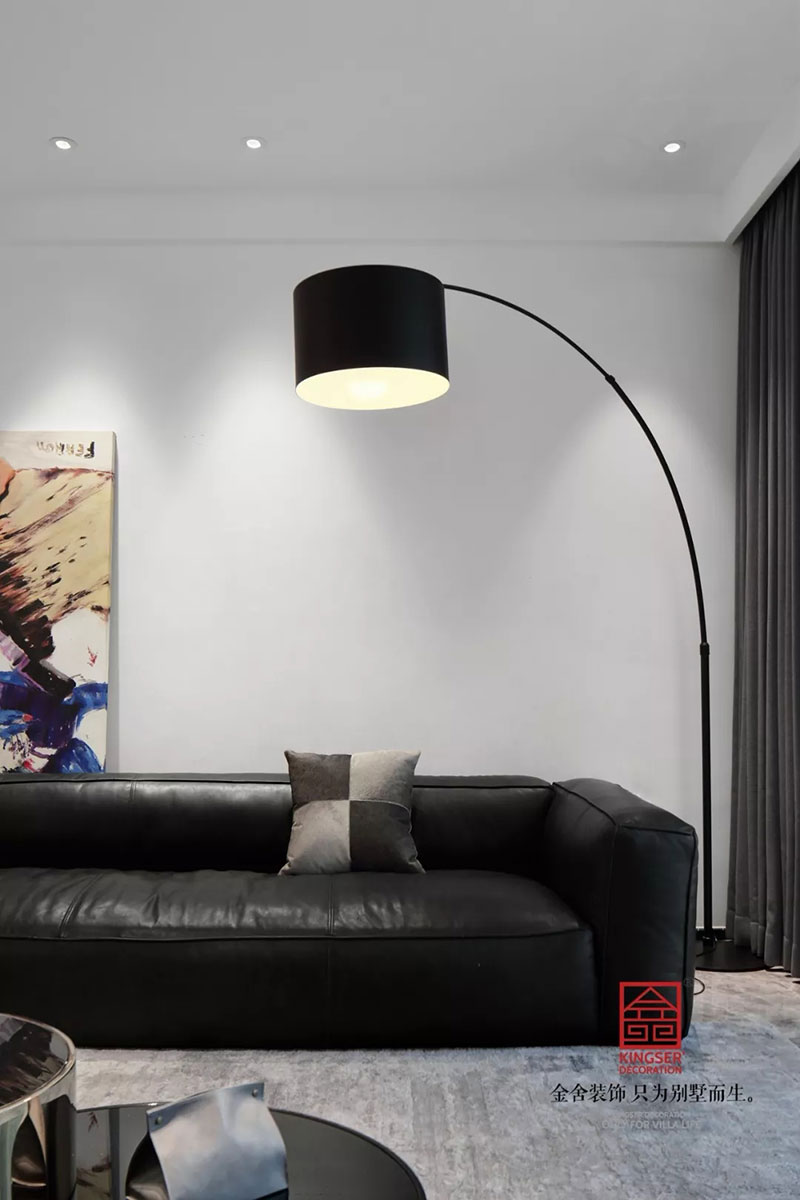 石家莊金舍裝飾-天山九峯175平米極簡風格裝修實景圖。極簡風格的美麗不光是一種快節奏生活中的剪影,也是一種特立獨行的生活方式,對于極簡人來說優雅也是一種生活態度。同樣對于推崇極簡風,推崇工業風的人來說,極簡風格就是一個極致的風向標。