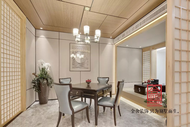 本案是石家莊金舍裝飾劉永佳設計總監為唐宮原著做的成品樣板間,一個樣板間的設計不光是為了凸顯出美觀,更是為了更多需要買房的業主提供一個很好的直觀效果,不能過于復雜,也不能過于簡單。設計師凸顯出的不僅僅只是對于中式元素的詮釋,更是一種對于生活本質的剖析,一花一樹一菩提,一夜一夢一平生,既是一種恬靜中的自我感悟,又是一種望淡然又無法擺脫塵世的遺憾。