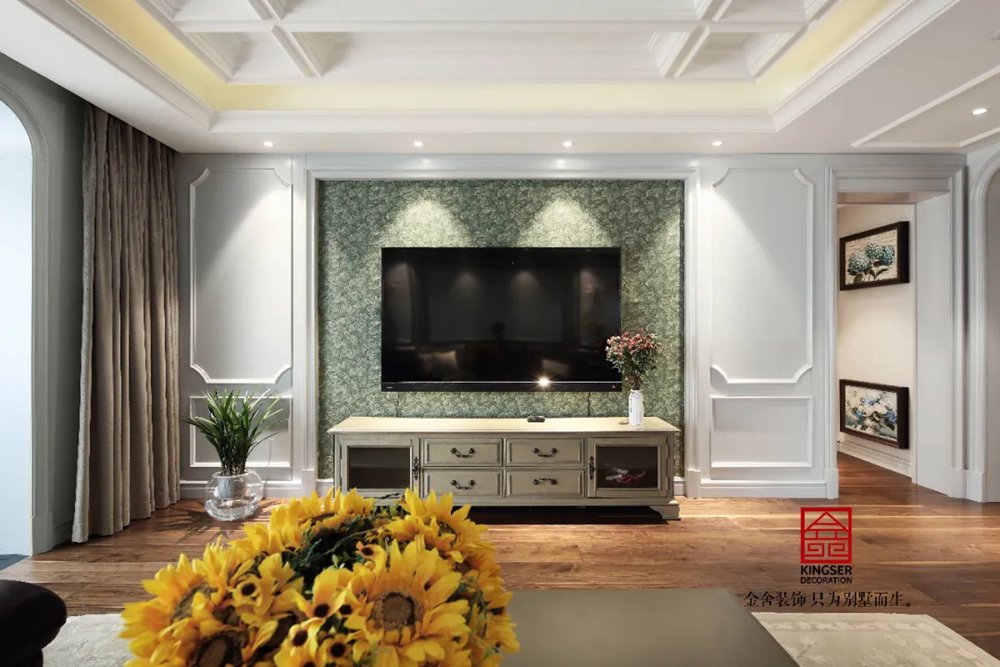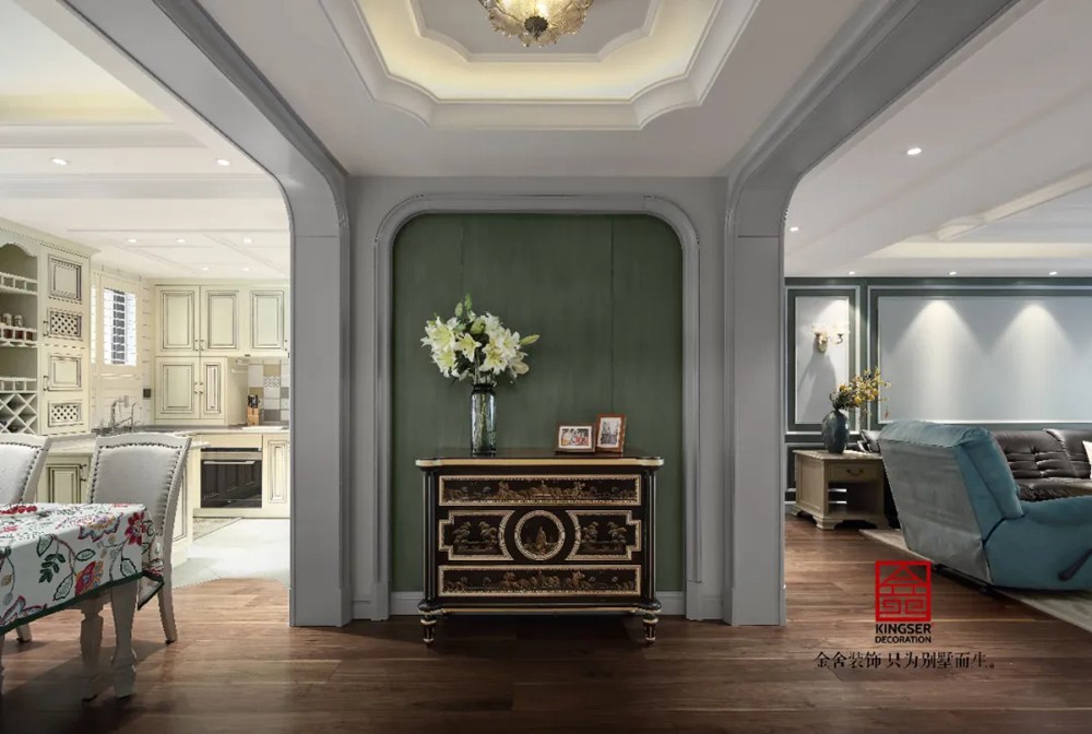 客廳綠色的點綴在靜謐的空間里恰到好處,完美之處在于步入入戶門的這一刻,映入眼簾的皆是經典簡約美式元素,圓潤的造型、浪漫的素色基調、溫暖的木質材料、極具講究的家具和燈飾。這種享受就好像是在回味經典電影中的浪漫情節,灰黃色的記憶,羅曼蒂克的生活。