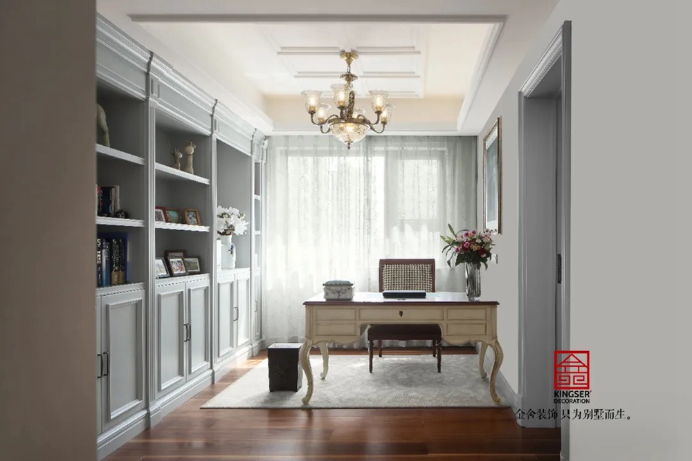 此案例為石家莊金舍裝飾-榮盛華府185平米美式風格裝修效果圖。喜歡簡約的氛圍,又喜歡美式的格調,相信很多選擇簡約美式的人都是以這種心態來裝修的;這套房子同樣以這種基礎心態裝修,在穩重與簡約的空間搭配下,打造出一個舒適愜意又穩重檔次的家。以繁華自然筑就生命佳境,不浮夸不炫耀,歷史與未來的完美結合,時間與空間的完美結合,建筑與藝術的完美結合。