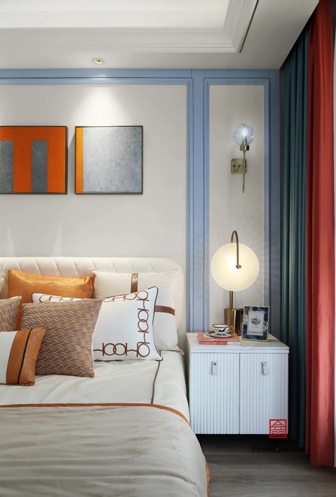 臥室的風格,相較于客廳更加的隨意一些,整體色彩與家居的搭配,加上清新曼妙的窗簾,很好的過度了整體色彩。