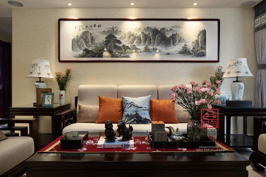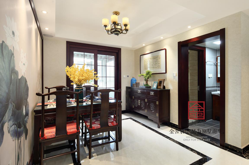 本案是金舍裝飾-啟銳園140平新中式裝修風格實景圖的家居,這套案例相對來說面積并不是很大,但是對于家具和家庭配飾的選擇則是非常的仔細講究,高山流水,落花賞月,家中的一切事物都透出一種輕松淡然的自然氣息,相信人們都會深深沉入這種的恬靜氣氛之中。