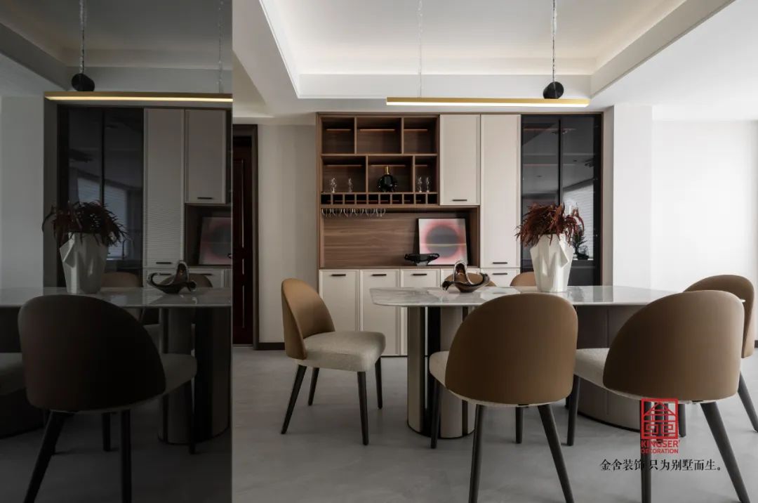 簡化和概括傳統古典中式的形式,采用古為今用、中西合璧的設計手法,打破了傳統中式可能帶來的沉悶和厚重感,從而給空間注入了時尚現代的氣息。