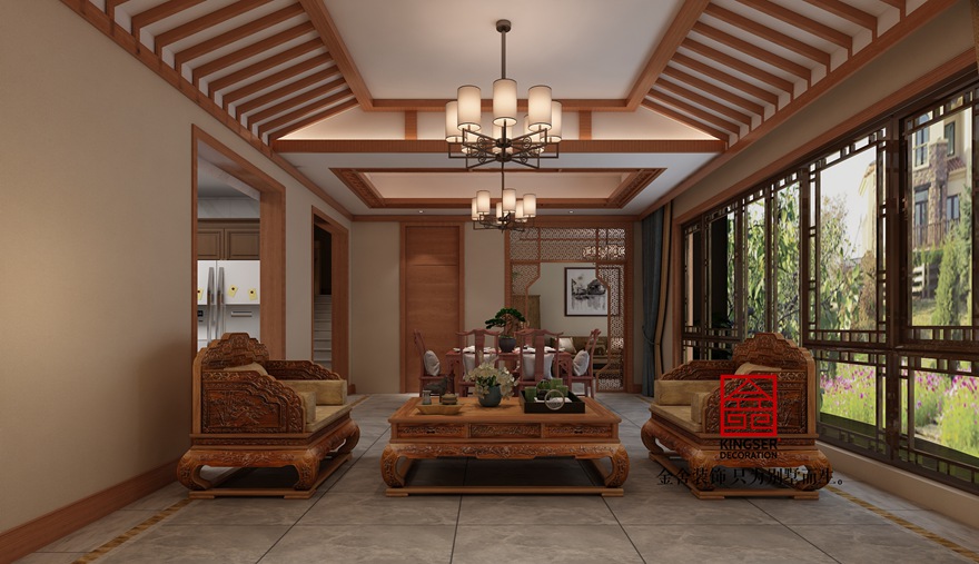 設計說明:此案例為石家莊金舍裝飾-大者國山雅院194平米中式風格裝修案例。本案最初的設計要求是中式風格,但設計師經過與客戶的多次溝通后,達成共識:要求保持中式風格的雍容華貴的氣度,但是要避免中式風格帶來的沉悶。所以一直認為要做的風格是:現代環境中具有中式元素的現代中式風格。