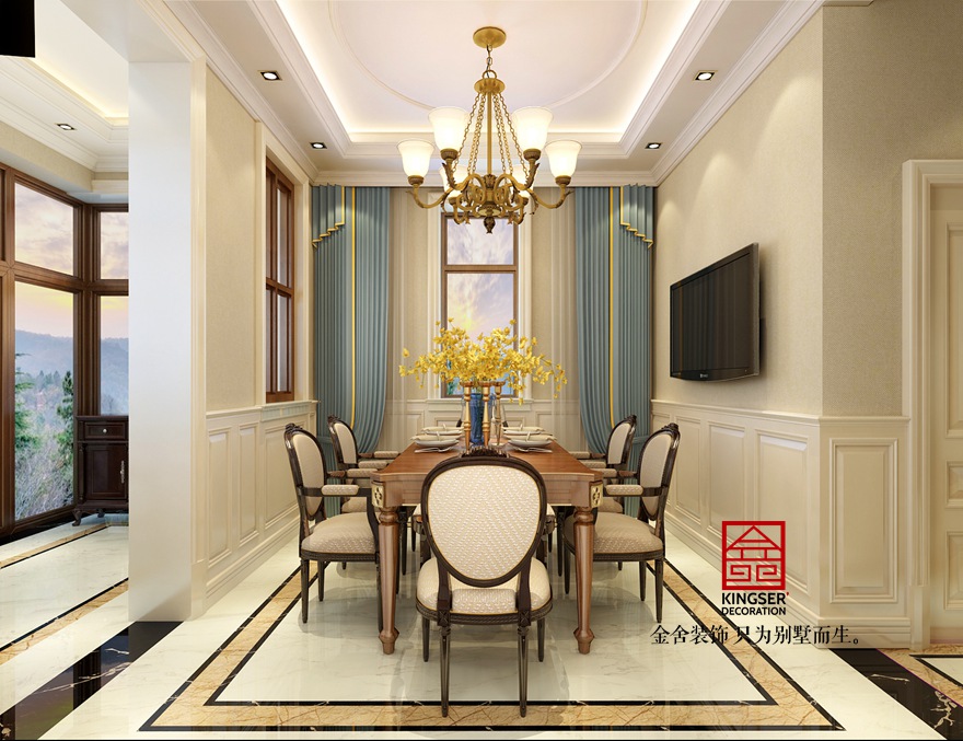 本案為石家莊金舍裝飾-大者300平米美式風(fēng)格裝修效果圖。采用了簡(jiǎn)單明了的淺色調(diào)的清新美式風(fēng)格,整體的色調(diào)采用了淺米黃色的素色壁紙,加之乳白色簡(jiǎn)潔造型,精致的銅鑄吊燈,使得整個(gè)空間錦上添花,質(zhì)樸而不奢華。搭配亮色布藝和簡(jiǎn)潔干練的美式家具,使得整個(gè)空間簡(jiǎn)潔大方,質(zhì)樸典雅,完美的符合了業(yè)主提出的“簡(jiǎn)潔而不簡(jiǎn)單”的設(shè)計(jì)理念。