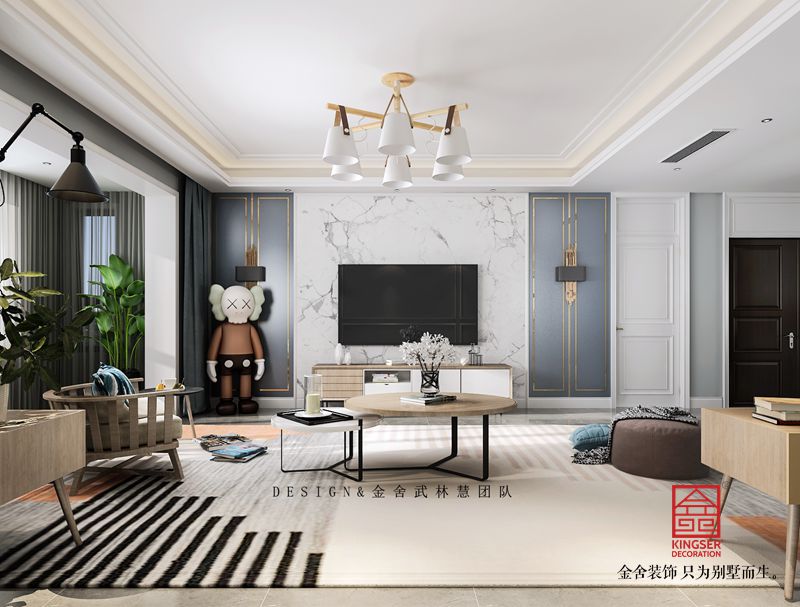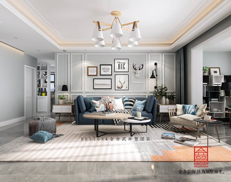 設計說明:本案為石家莊金舍裝飾-榮盛華府190平米現代風格裝修效果圖。是一套現房住宅,位于榮盛華府,因為是邊戶的住宅戶型加上本身樓層偏高,所以整體采光比較好,這也是本案考慮設計用色的一個關鍵點,本案業主是一位年輕的男士,也是準備結婚的婚房。由于工作性質,很喜歡花藝綠植以及一切跟美好相關的事物,喜歡的風格是簡單的淺灰色調自然系北歐風,所以在用色上我們采用了大面積淺灰色調搭配局部亮色點綴,再加上經典的木色系家具沉淀氣質,他們的小家就這樣應運而生,我們用最淳樸的藝術語言,詮釋著屬于他們的專屬幸福。