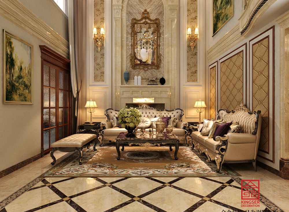 設計說明:此案例為石家莊裝修公司-香邑瀾山270平米歐式風格裝修效果圖。歐式風格強調以華麗的裝飾、濃烈的色彩、精美的造型達到華貴的裝飾效果。歐式客廳頂部用大型燈池,并用華麗的枝形吊燈營造氣氛。門窗上半部做成弧形,并用帶有花紋的石膏線勾邊,室內則有壁燈造型。墻面用優質乳膠漆,以襯托豪華效果。