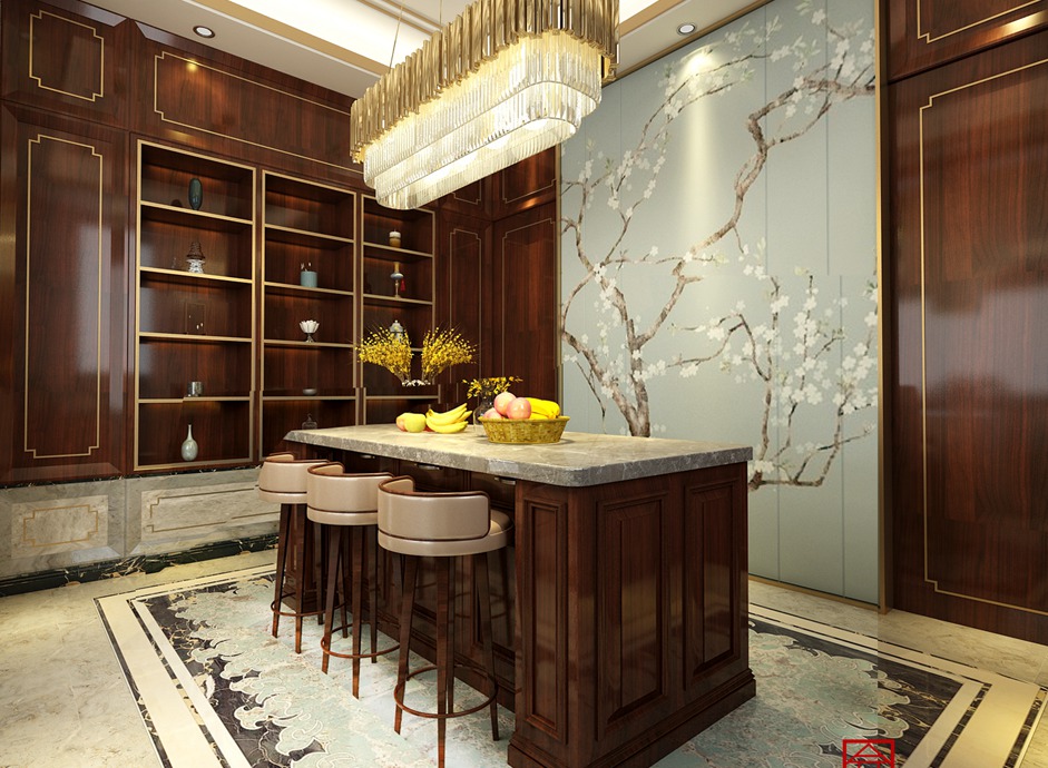 此案例為石家莊金舍裝飾-北苑別墅800平米新中式風格裝修設計圖。新中式風格中的家具大多是古典家具或者是現代家具與古典家具想結合。家具的顏色主要是以深色為主,有深厚沉穩的底蘊。裝飾造型主要采用硬朗簡潔的直線條,空間具有層次感。既使得中式家具古典、質樸的內涵顯現,又符合現代人追求的時尚感、實用性。 金舍裝飾在室內設計中,一貫追求照搬古代設計往往效果不盡如人意,更要注重加入現代元素。現代技術中有很多新型材料,就可以善加利用進去。另外在設計中也可以把主人的個人喜好、品味等也加入進去。既滿足現代人居住的要求,迎合中式家具的設計風格。
