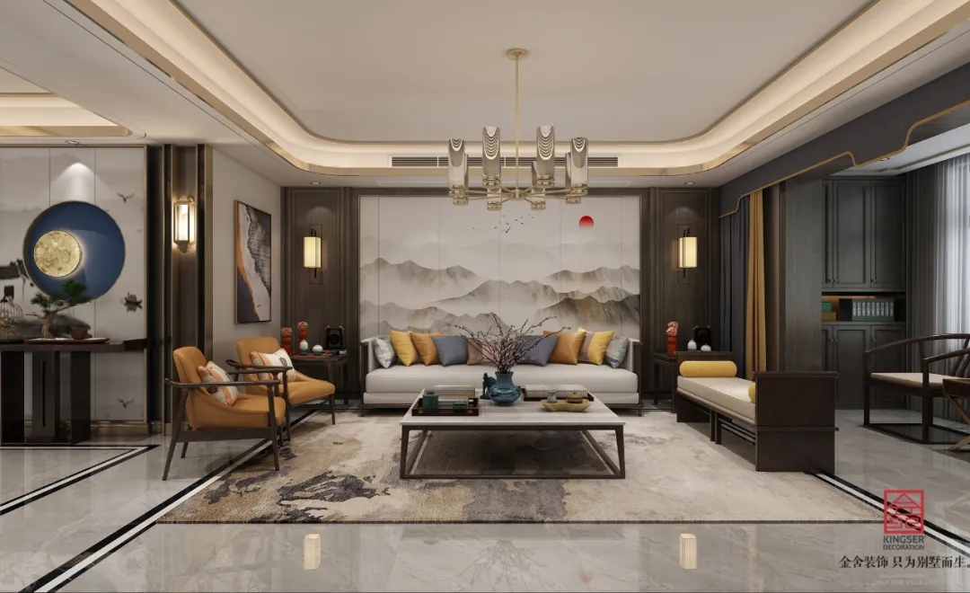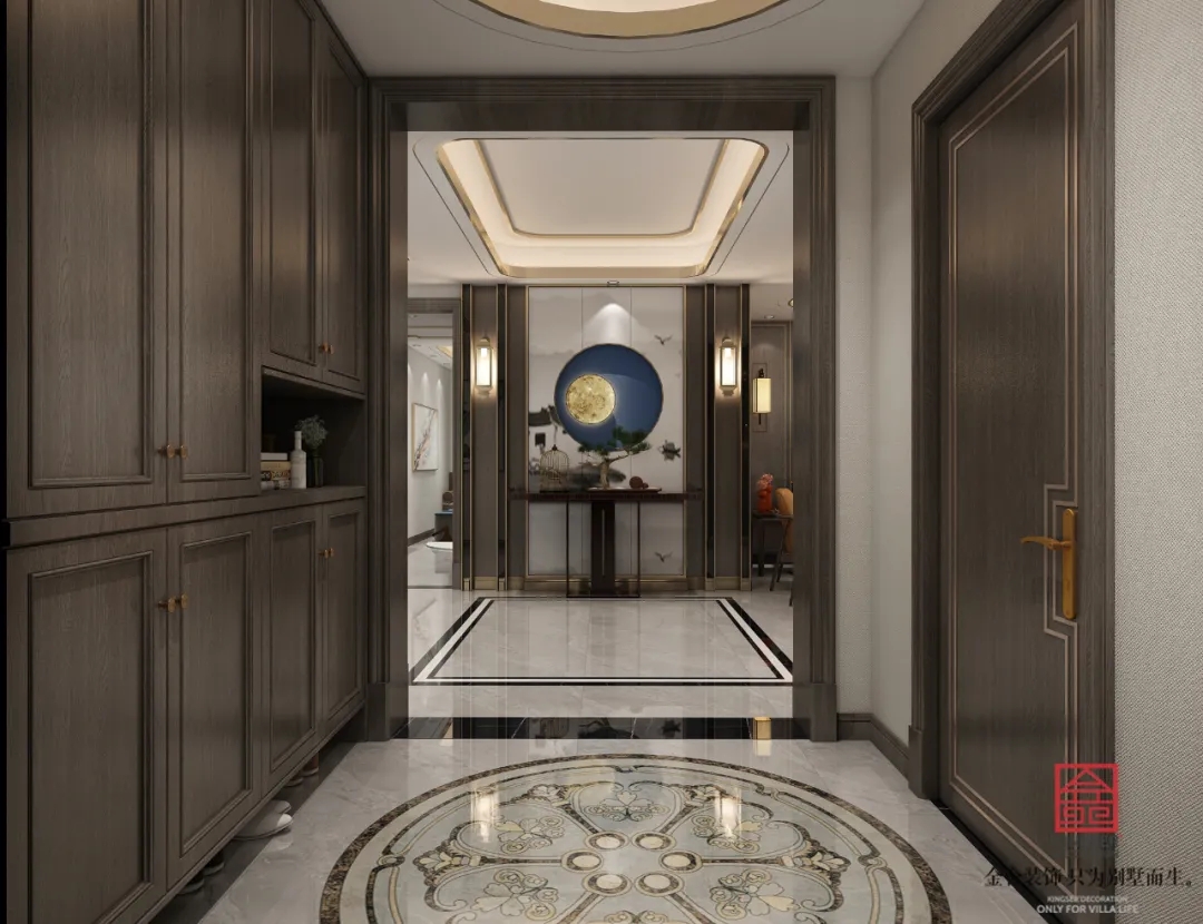 此案例為石家莊金舍裝飾-榮盛華府215平米新中式風格裝修案例。新中式風格傳承了傳統中式風格的文化底蘊,又將現代審美融入其中,將含蓄內斂的美學韻味徐徐呈現在了眾人面前,令人沉醉、留戀。似有靜謐、似含古韻,思想不禁浮想聯翩,無法掩飾一個人的精神世界,是心靈和性情的外化之地。中式元素與現代材質搭配,既有文化的傳承又不會全盤固守傳統,是現代的思想與千年來的文化彼此融合與碰撞。