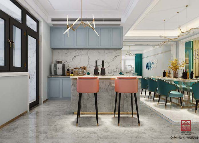 設(shè)計(jì)說明:此案例為石家莊金舍裝飾-林蔭大院260平米輕奢風(fēng)格裝修效果圖。設(shè)計(jì)之美不應(yīng)全倚仗修飾,而應(yīng)該醉在靈魂。金屬的高貴冷感,更易與小物件和小細(xì)節(jié)催生出默契,精致的輕奢氣質(zhì)點(diǎn)睛而出。