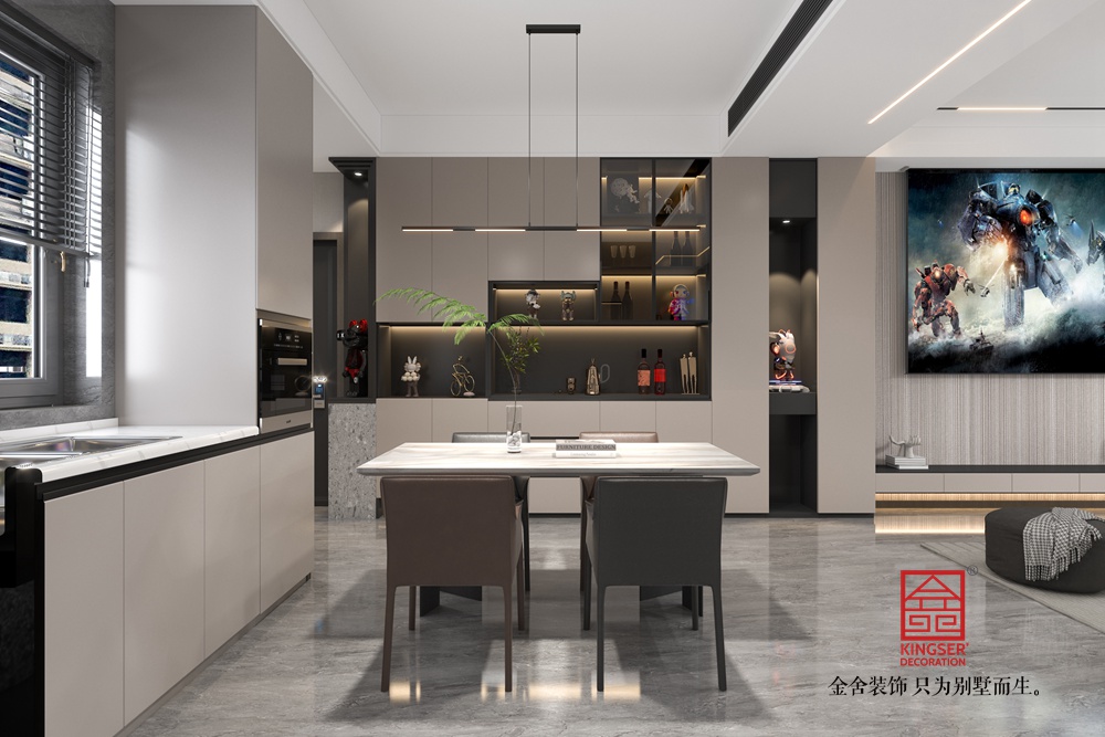 本客廳設(shè)計(jì)以現(xiàn)代簡(jiǎn)約風(fēng)格為主,融入輕奢元素。空間運(yùn)用米白、淺棕等柔和色調(diào),營(yíng)造出寧靜舒適的氛圍。墻面采用簡(jiǎn)潔的板材與線條設(shè)計(jì),搭配嵌入式燈光,增強(qiáng)層次感與溫馨感。