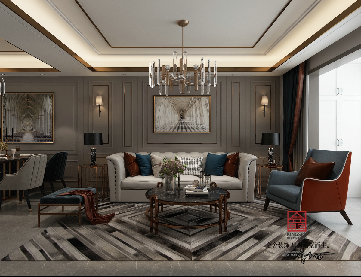 當前位置: 首頁 > 裝修案例 > 裝修圖庫 > 融創中心裝修-輕奢風格-客廳
